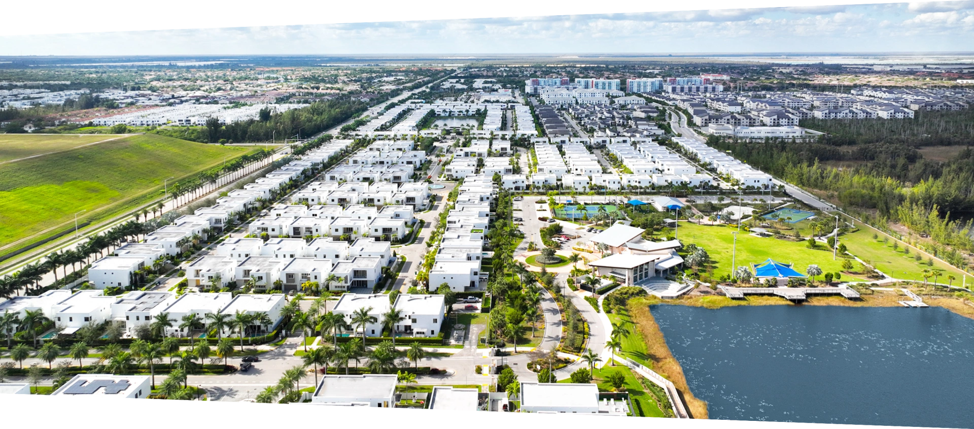 Modern Doral’s three subdivisions encompass a total of 319 luxurious 4-, 5-, and 6-bedroom residences. Residents enjoy private access to three clubhouses outfitted with meeting and social areas, fully equipped fitness centers, children’s playrooms, libraries, business centers, and oversized swimming pools with spas and sun decks. The adjacent city park offers residents nature reserves, biking and walking trails, and other recreational resources.