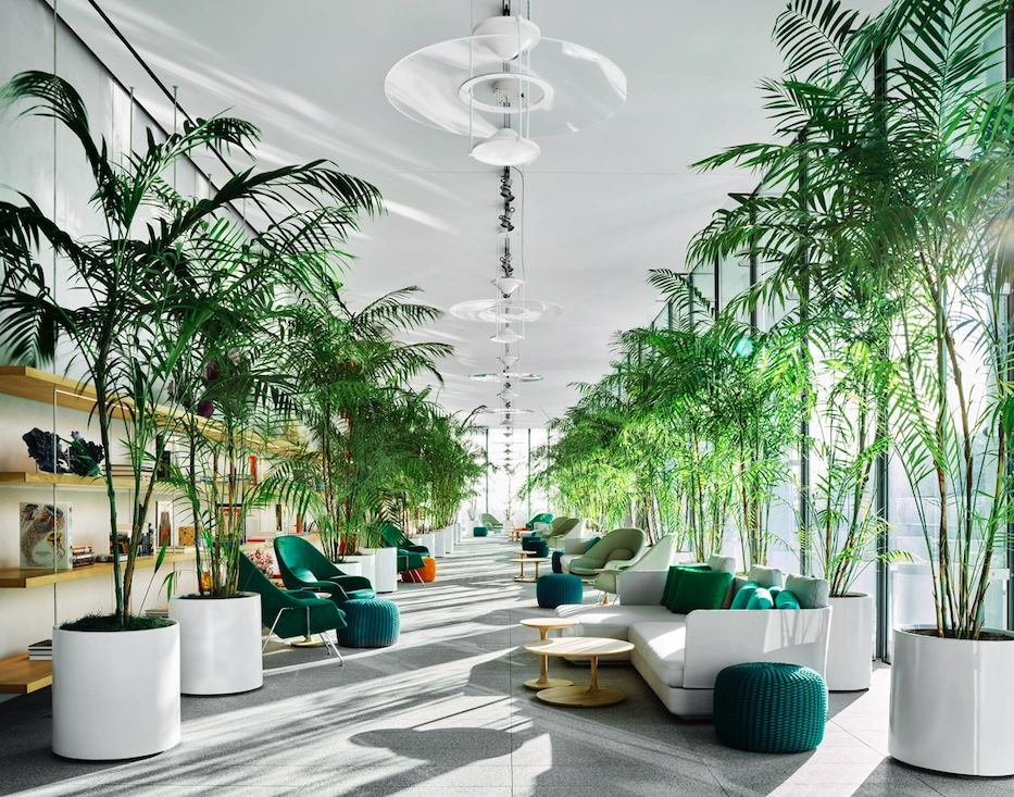 In North Miami Beach, Eighty Seven Park seems to hover weightlessly above the ocean and parks below, thanks to its cantilevered architecture designed by Pritzker Prize-winning architect Renzo Piano, his first residential project in the U.S. RDAI in Paris, known for its work with Hermés, splashed the interiors of the 68-unit building with designs inspired by the area’s natural surroundings. Light oak flooring mirrors the color palette of sea grape leaves, Venetian terrazzo floors mimic white sandy beaches, and an airy lobby library is dotted with lush greenery, glass pendant lighting from Iguzzini and bright poufs by Paola Lenti. Extra perk: a 2-acra private park created by renowned Dutch landscape architecture firm West 8. Eightysevenpark.com