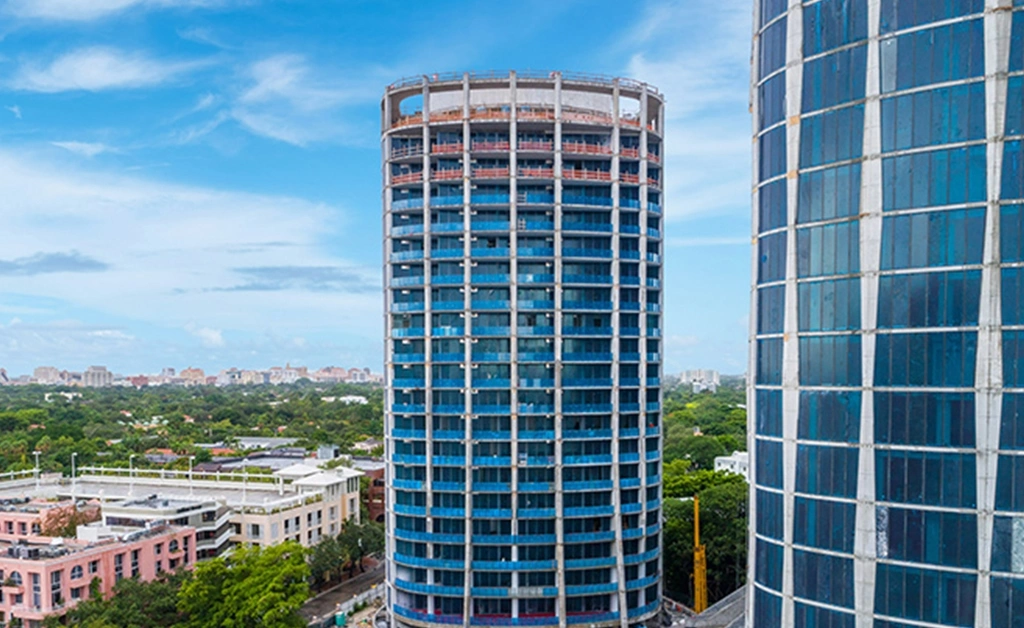 new construction images highlight the progress being made in miami at the site of the OMA-designed ‘park grove’ development. neighboring bjarke ingels’ twisting ‘grove at grand bay’ towers, the project was unveiled in 2014, with new images of the scheme’s interiors revealed last year. the design distributes 1 million square feet of living across a series of distinct towers, which each offer sweeping views over biscayne bay. the complex boasts a host of amenities, including a rooftop pool deck, an outdoor amphitheater, and a 28-seat private screening room.