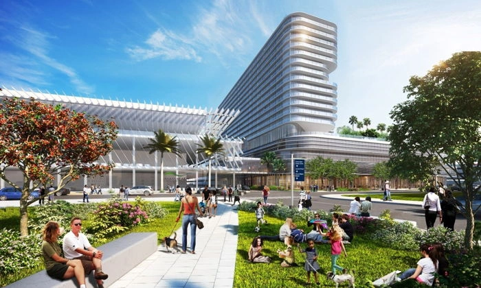 Plans also include landscaped pedestrian promenades on surrounding streets, bike sharing stations, connectivity with public transit routes, dedicated ridesharing pick-up and drop-off zones, and direct access between the Convention Center and Lincoln Road. The project's resiliency and sustainability measures include storm water management and reuse, flood risk mitigation, and the use of solar power – all of which are designed to ensure operational continuity during weather events.