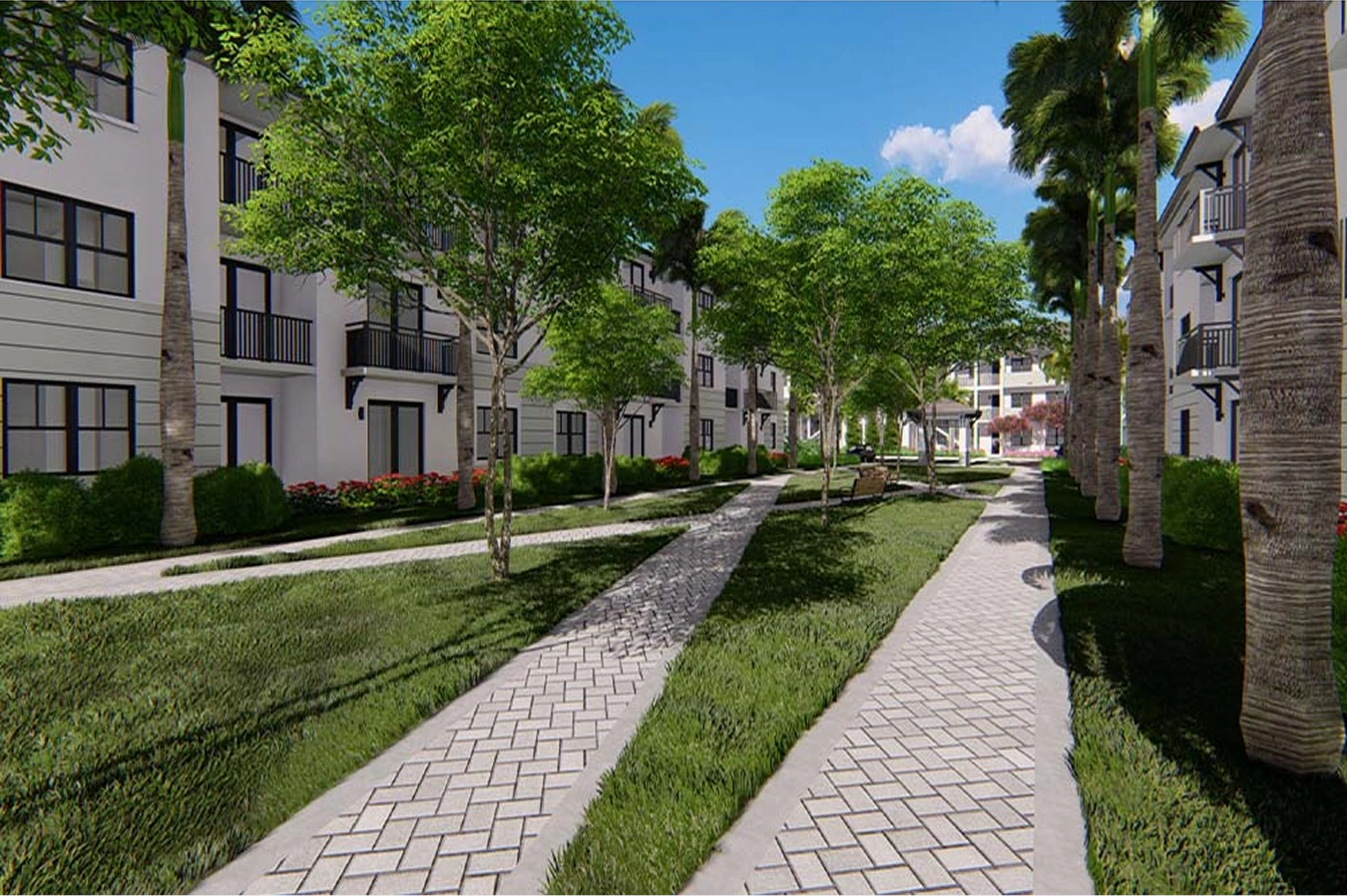 An exclusive gated community, Doral Cay is modeled on lush Caribbean resorts, with luxury townhomes, coquina stone hardscape, and light-flooded interiors. |