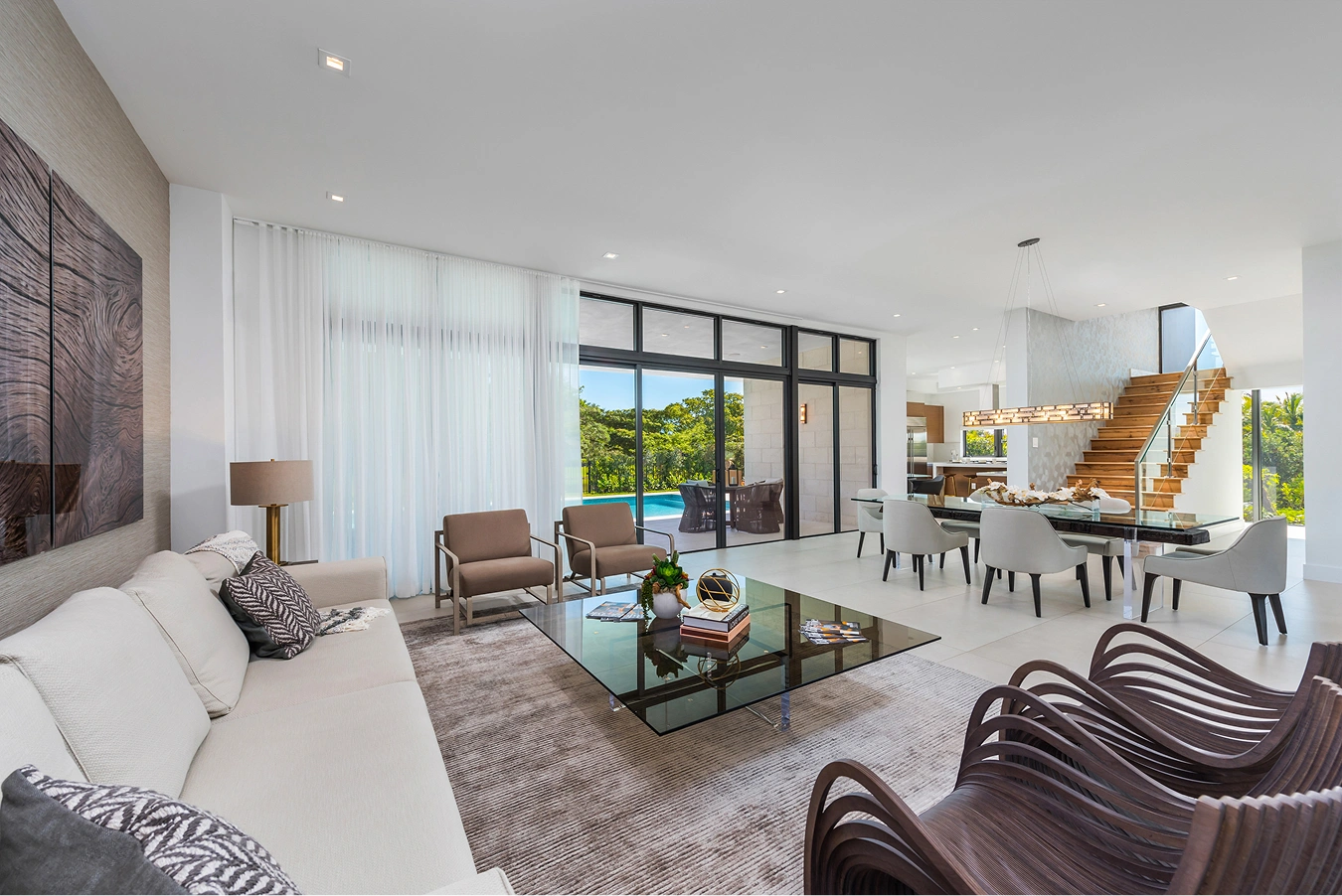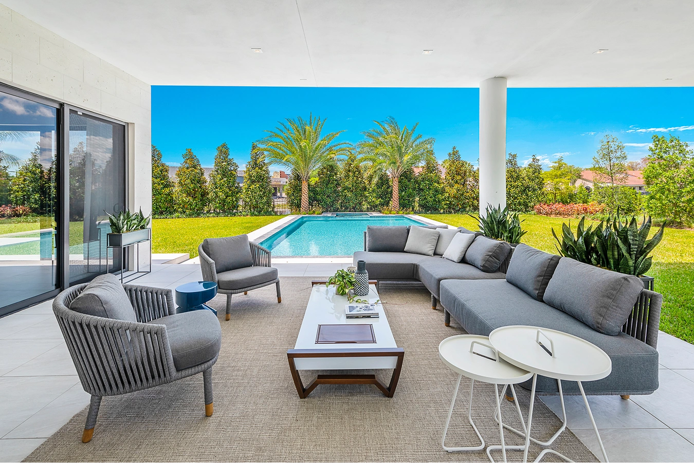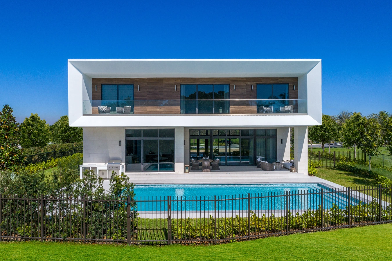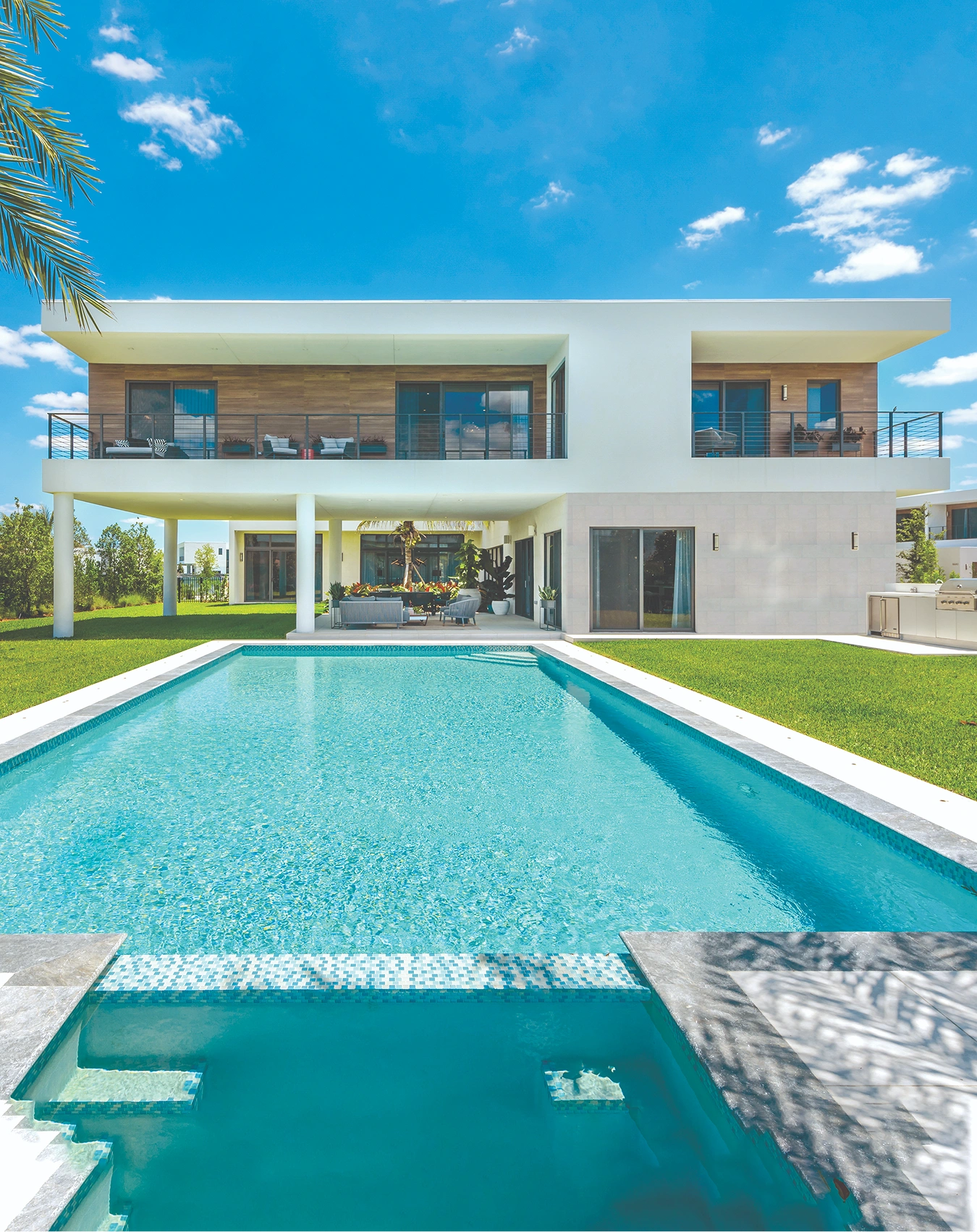 Homes at Botaniko, are designed with a focus on seamless flow and transition from indoor to outdoor living space in mind, with the idea that each home has a strong connection to, and balance with, the surrounding natural landscape. As such, Oppenheim and Mateu considered outdoor areas as part of the overall design objective, creating spaces for entertaining, recreation, and relaxation that are purpose-built for being an extension of nature. Many of the homes at Botaniko boast lakefront views, private pools, covered patios, and outdoor summer kitchens. The Landscape Design Workshop accented these environments with lush green spaces that are functional as well as aesthetically pleasing, giving each home a sense of place within a natural atmosphere. Interiors by V Starr, the interior design firm led by American tennis champion Venus Williams, further reinforce this idea of seamlessness with furnishings and fixtures that frame and highlight picturesque views throughout each residence.