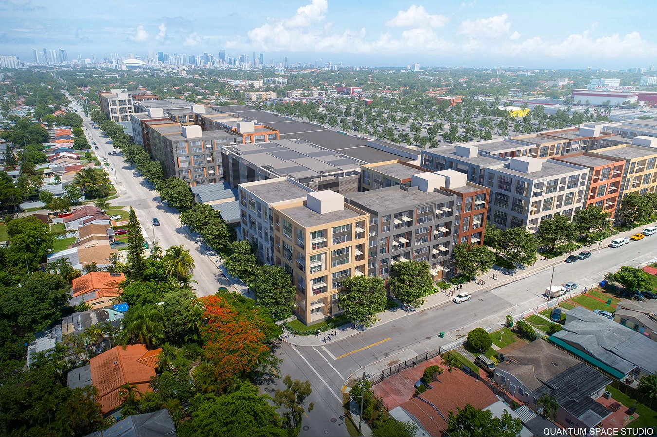Centro City is a mixed-use development that will revitalize underutilized space in West Little Havana—one of Miami’s most promising neighborhoods—with much-needed residential offerings, prime retail, and a charter school. Located on the northwest corner of NW 7th Street and NW 37th Avenue and under two blocks from the 836 Expressway, Centro City will transform an existing shopping center into a 39-acre community-centered, mixed-use destination with 1,188 apartment units and flagship retail stores, including Target, Fresco y Más, and Walgreens.
