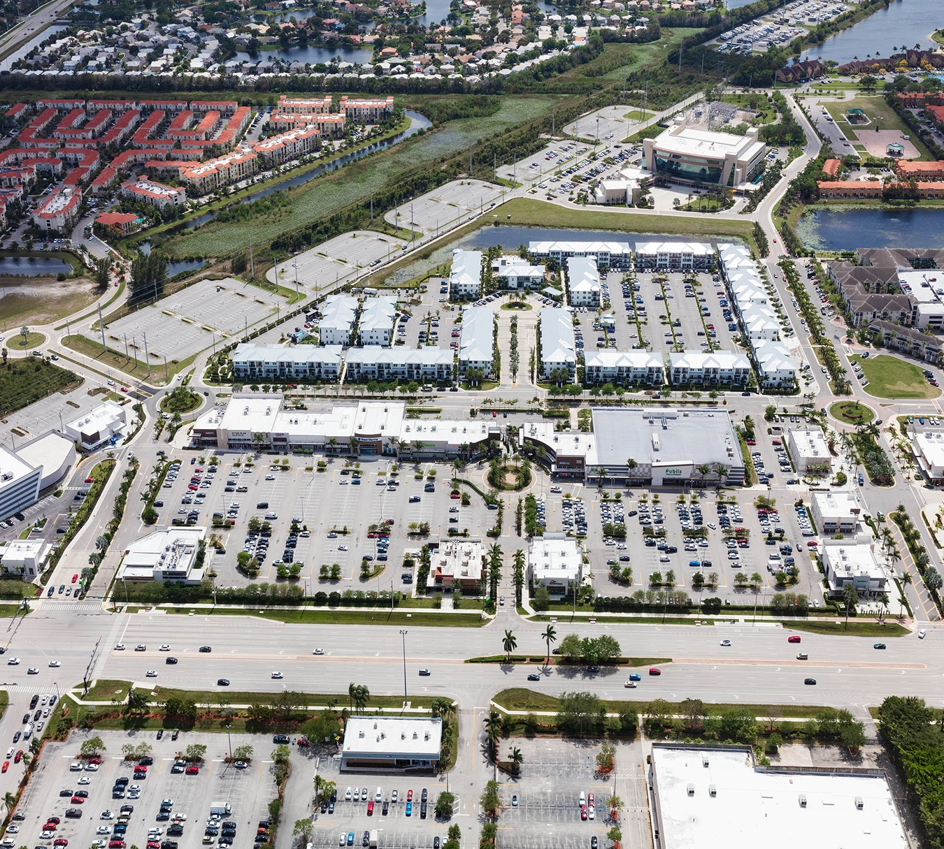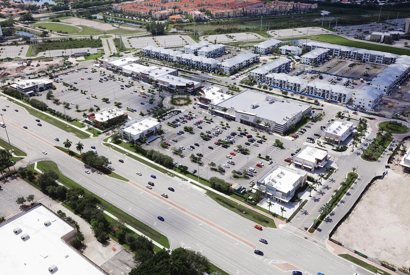The 80-acre two-phase master plan for Pines City Center called for approximately 300,000 total square feet of lifestyle-oriented retail, entertainment, and restaurant space, with an adjacent residential apartment community positioned alongside. Phase one included 145,000 square feet retail space that would be anchored by Publix Supermarkets. Phase two included an additional 150,000 square feet of retail alongside 387 garden apartments ranging from one to three bedrooms and townhouses with two or three bedrooms, ranging from 651 to 1,491 square feet.